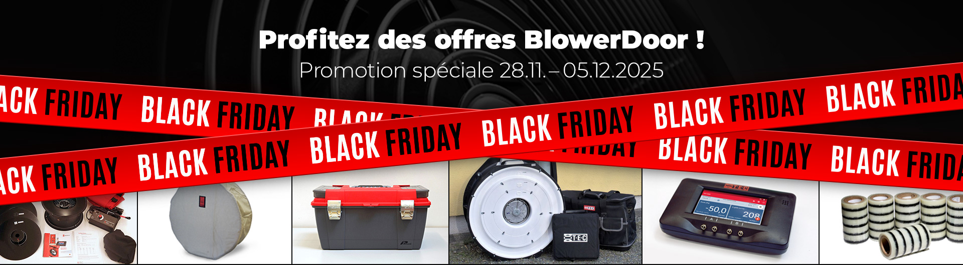 Notre assortiment de produits inclut des ventilateurs de mesure BlowerDoor, des manomètres, des sacs de transport, des cadres de montage, des bâches, des matères consommables, des accessoires et des pièces de rechange.